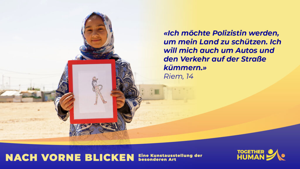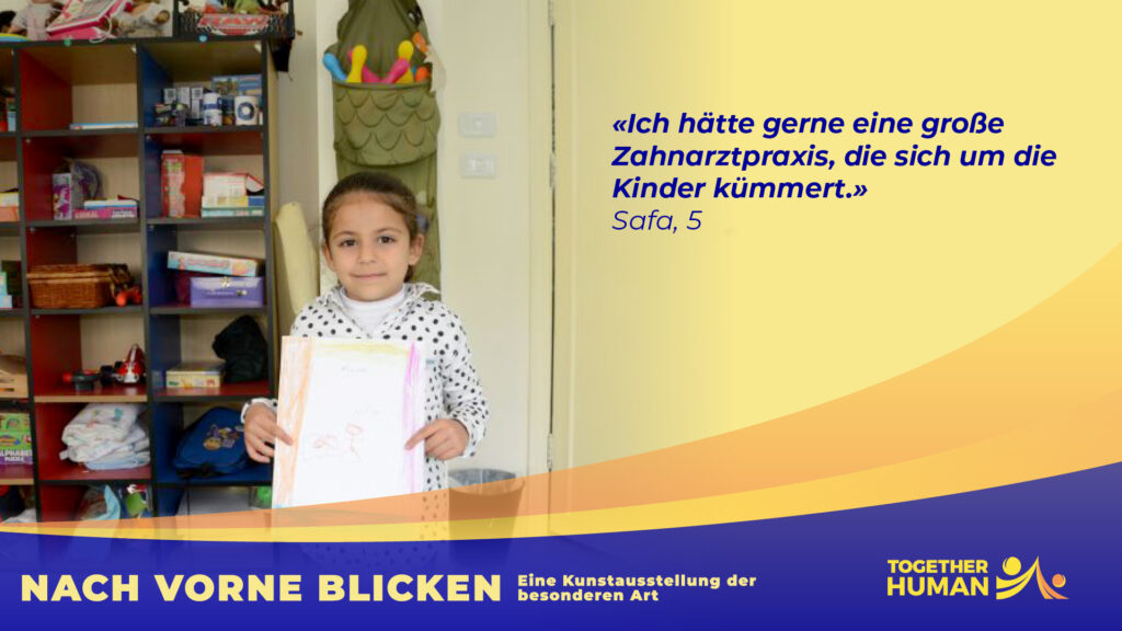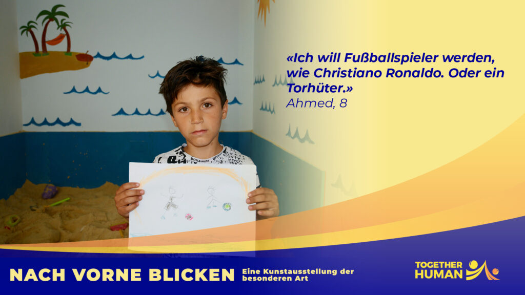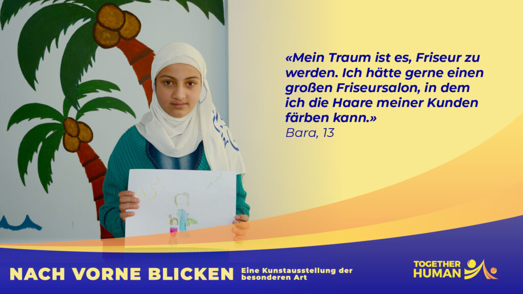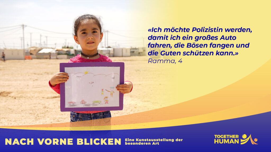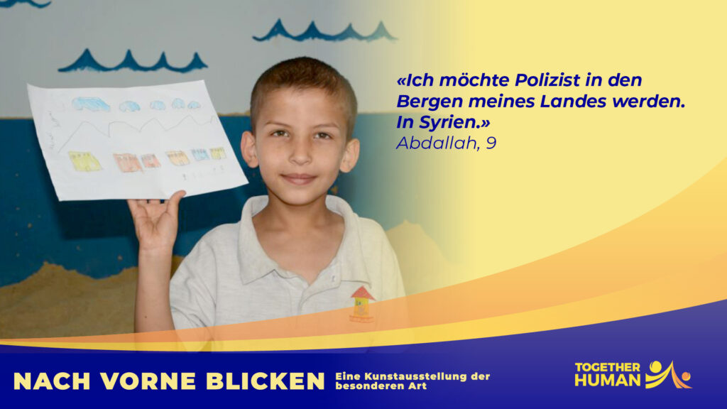 «NACH VORNE BLICKEN – Eine Kunstausstellung der besonderen Art» heisst das Ausstellungsprojekt mit dem Together Human 2022 in Basel erstmals an die Öffentlichkeit tritt. Wir informieren damit über die Lage von Kindern in einem Fluchtkontext im Nahen Osten.