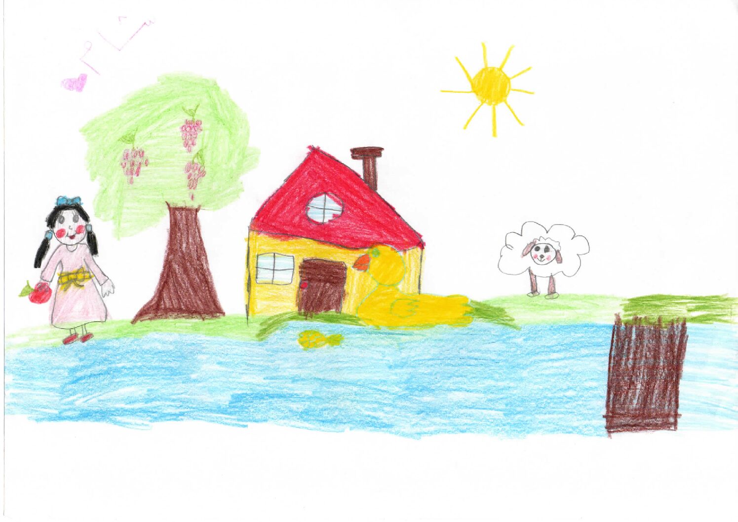 Die Zeichnung wurde von Sham angefertigt. Sie möchte einmal in einem Haus mit Garten leben.