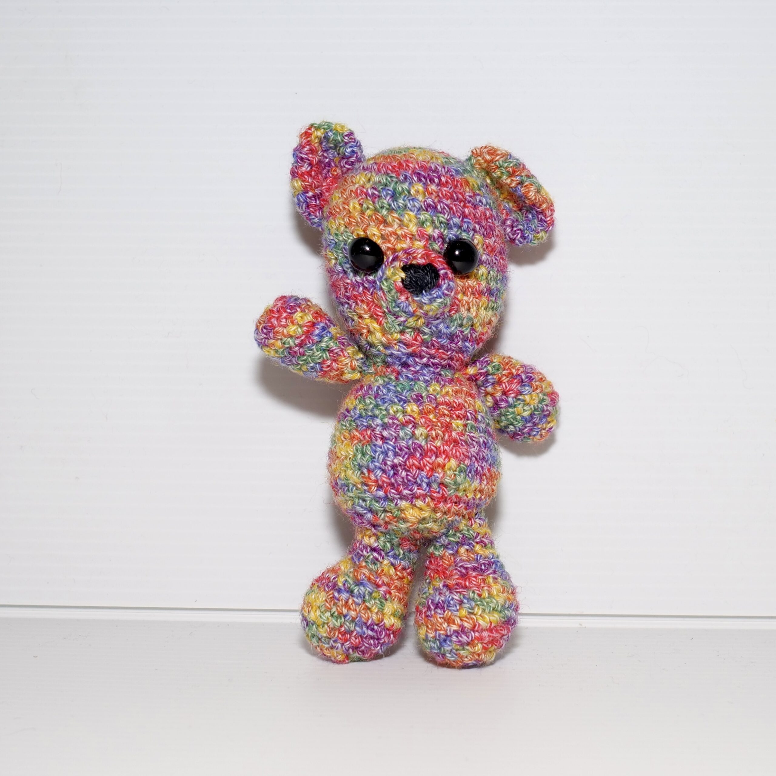 Björn ist aus weichem Garn mit viel Liebe handgearbeitet. Körperlänge: 13cm. Mit Knopfaugen.