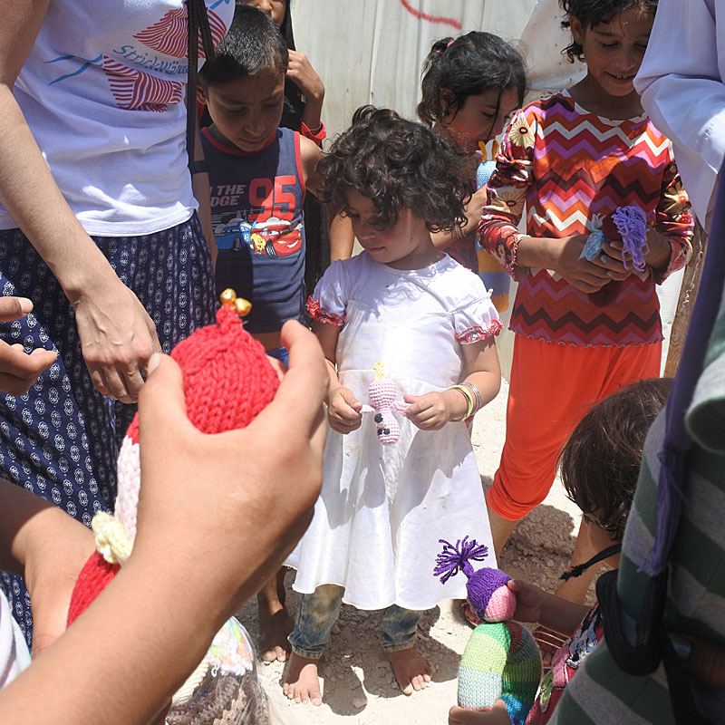 2016 besuchte Alfreda vier verschiedene, darunter auch inoffizielle Flüchtlingslager im Libanon. Im Gepäck hatte sie drei Koffer voller Strickpuppen, Decken und Babykleidern. Mit finanziellen Mitteln half sie Familien in besonders schwierigen Situationen wie z.B. einer Familie mit einer hörbehinderten Tochter, die dringend ein neues Hörgerät brauchte, oder auch einem älteren Ehepaar, das sich weder Lebensmittel noch Medikamente leisten konnte.